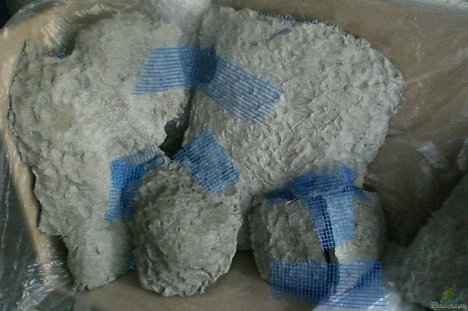 Die Einrichtung besteht aus selbstgebauten Felsenelementen. Alle Teile sind hohl und können als Schwimmraum und Höhlen genutz werden.