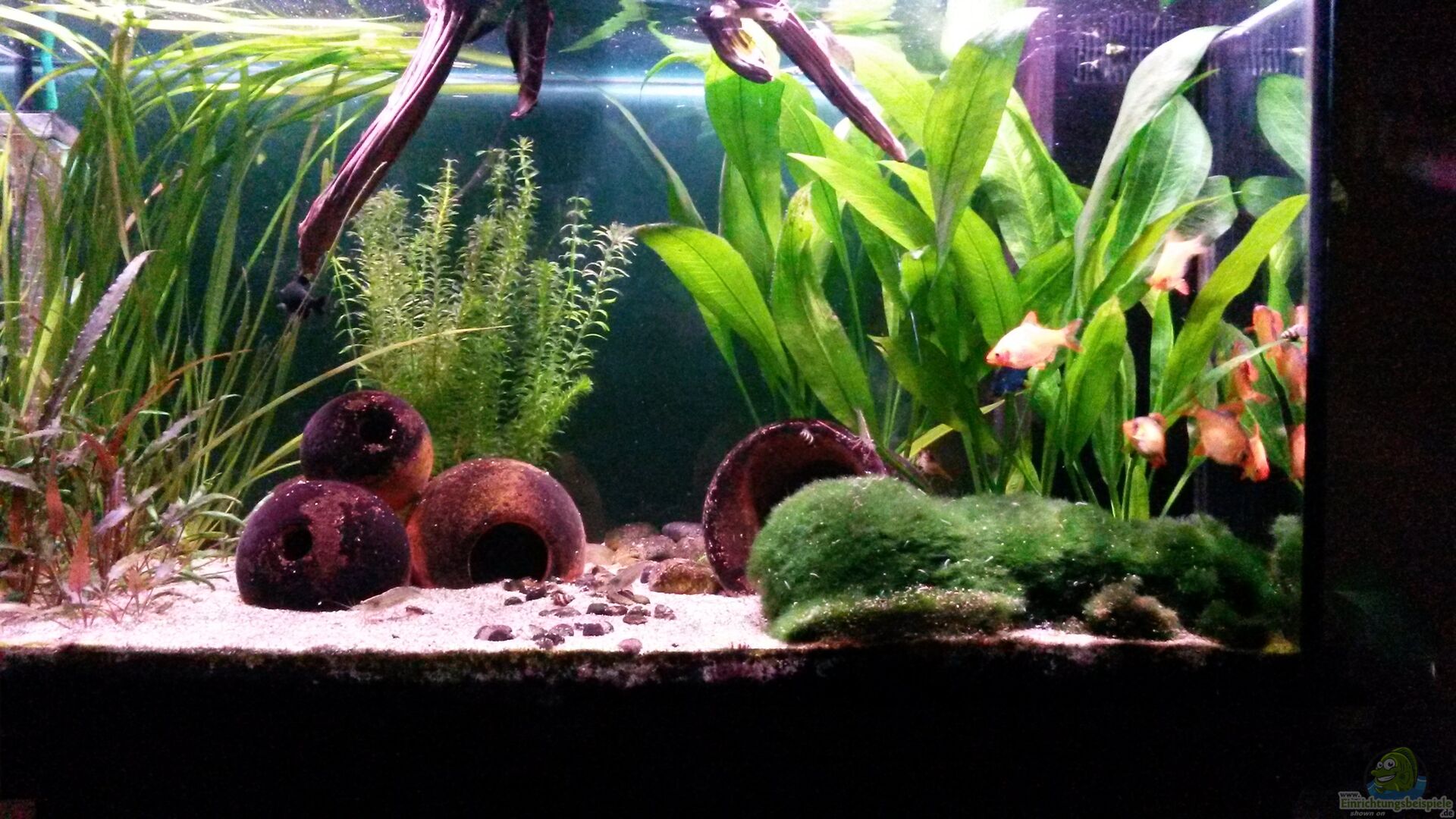 Es handelt sich um ein Juwel Rio 125 Standardbecken, welches offen mit nachgerüstetem LED-Licht und ma??angefertigter Glaspflanzrinne betrieben wird, dessen Pflanzen durch eine zusätzliche Pumpe mit Aquarienwasser versorgt werden. Es handelt sich um ein reines asiatisches Artenbecken.