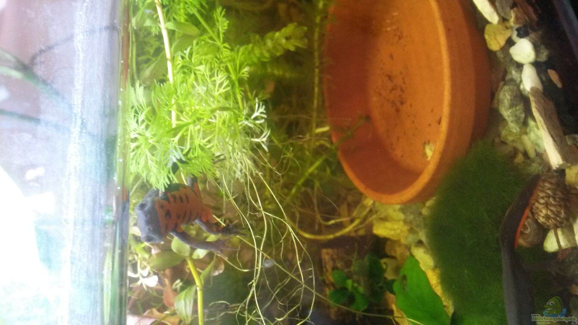 2 feuerbauchmolche (+2 minis (vermutlich Ende Oktober verschollen) etwa garnelen grö??e mit kiemenästen; erinnern mich an axolotl) diese werde ich leider nicht separat aufziehen, somit sind die dauerhaften Chancen leider eher gering. Vielleicht werde ich mich an einer späteren Generation versuchen. Leider ist das ganze derzeit zu aufwendig für mich, da ich nicht ganz fit bin. 5 red fire Garnelen (4 davon meine erste nachzucht ich hoffe diese Generation ist robuster es ist wirklich schlimm [...]