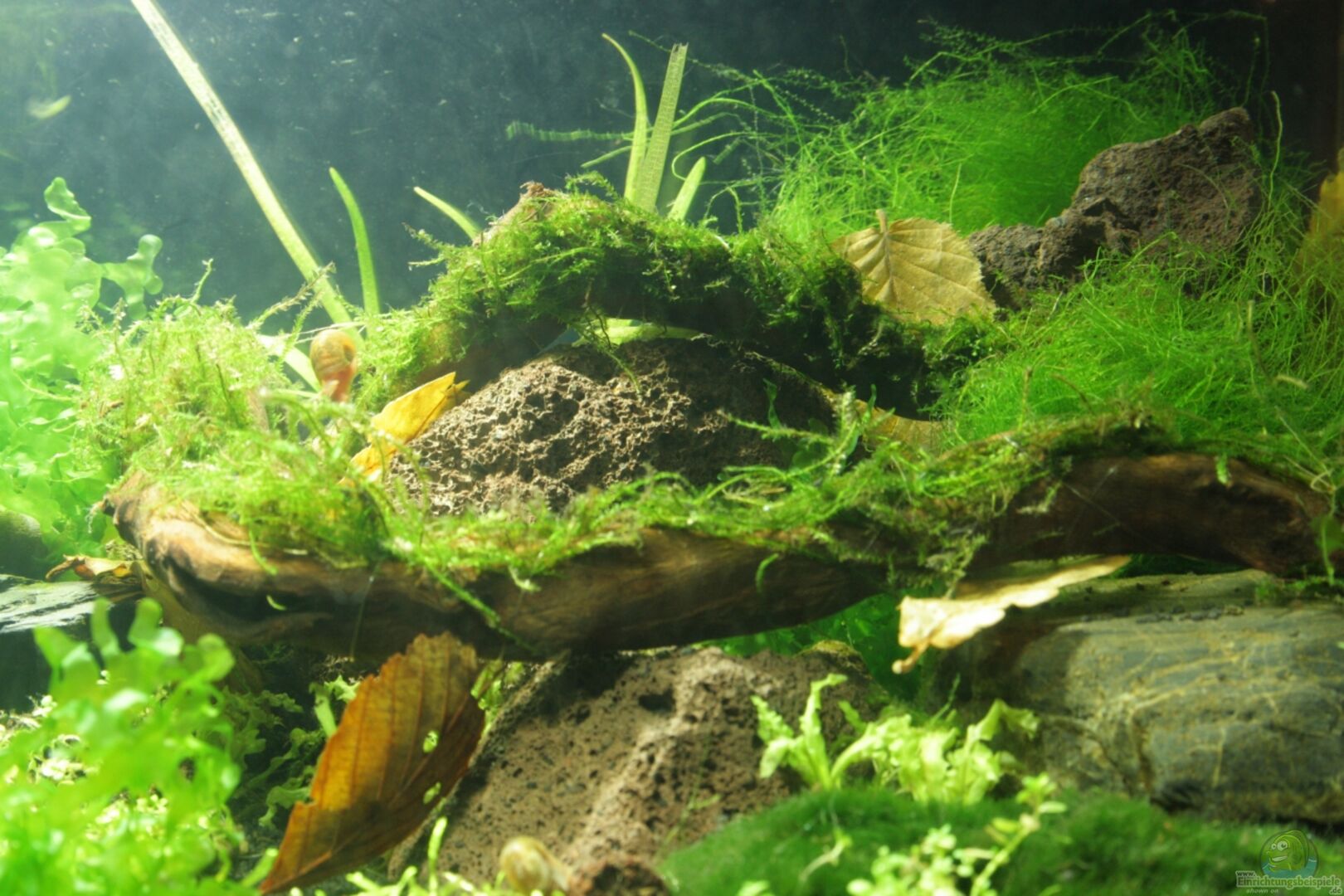 1x Garnelenbäumchen (Morkienwurzel) 2x Wurzel Savanne 1x Drachengestein 3x Mooskugel (geteilt und auf Boden ausgebreitet) versch. Lavasteine versch. grosse und kleine Steine Eichenblätter, Buchenblätter, Erlenzapfen viele Pflanzen und Moose