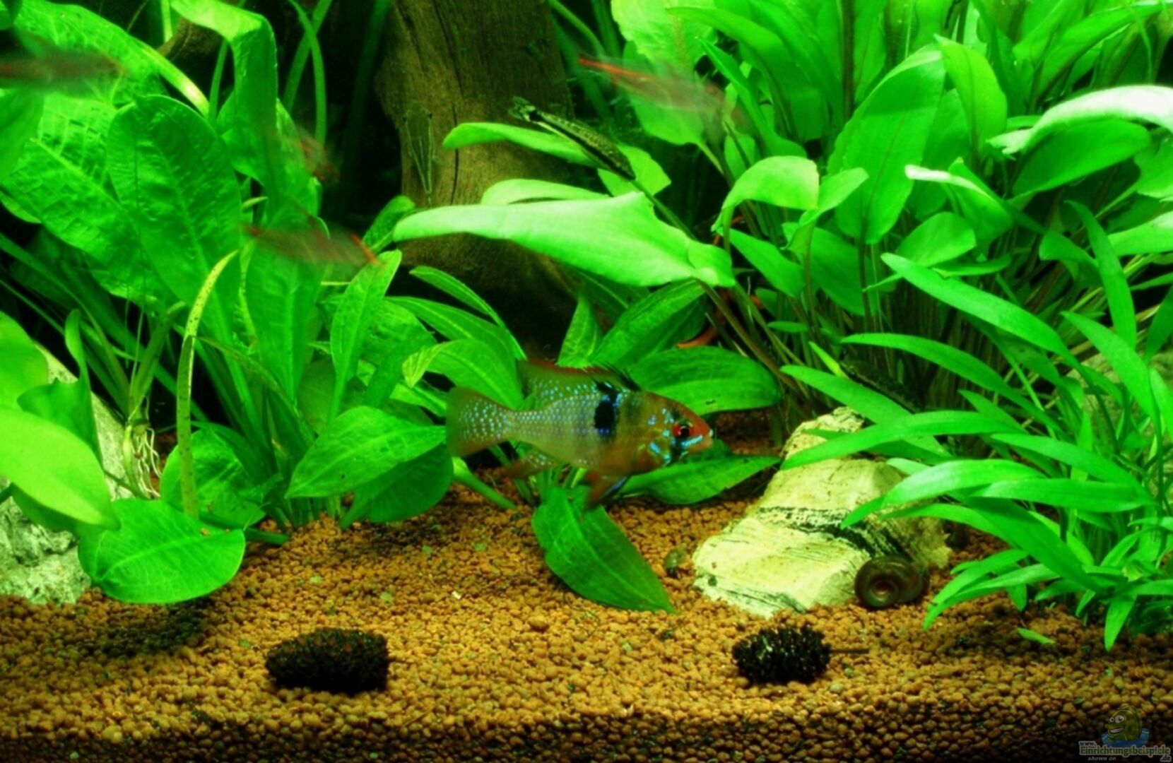 Fische: - 1m/1w Apistogramma borelli ( Borellis Zwergbuntbarsch ) * Beschreibung: Bei Apistogramma borelli handelt es sich um einen der kleinsten Vertreter der Gattung Apistogramma. Sie kommen im brasilianische Mato Grosso sowie in Quellbereichen und oberen Zuflüssen des Rio Paraguay und Rio Parana vor. Sie sind friedlich und lassen sich gut mit anderen friedlichen Arten vergesellschaften. Der Bodengrund sollte möglichst feinkörnig sein. Es werden alle gängigen Futtersorten akzeptiert, [...]