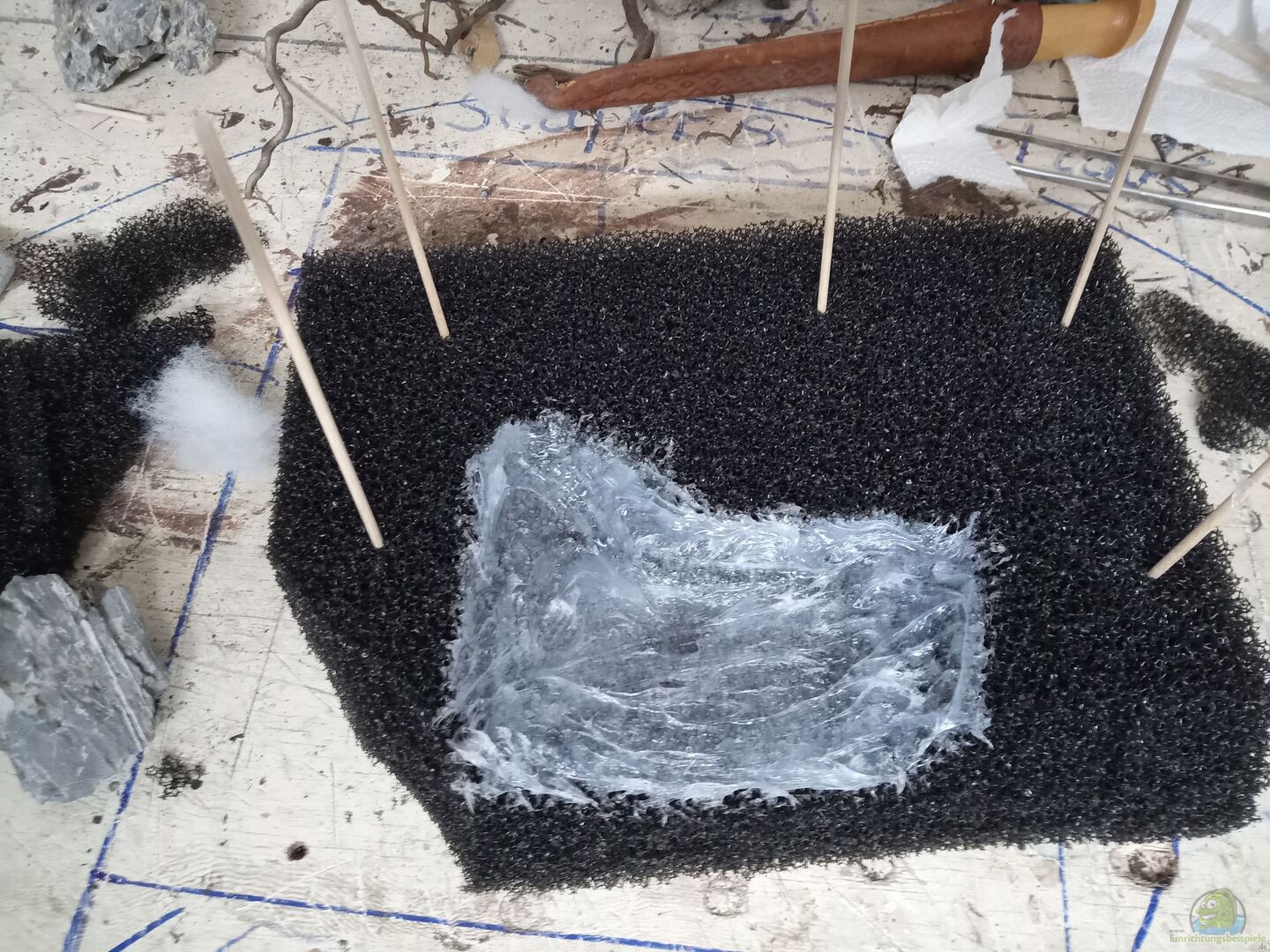 Versuch der Nachbildung eines berühmten Wasserfalls auf Island, den ich selbst schon besucht hab. Im linken, hinteren Eck befindet sich ein kleine Pumpe, die den Wasserfall versorgt. Es wurden Seiryu Steine verwendet, die teilweise zusammengeklebt wurden.