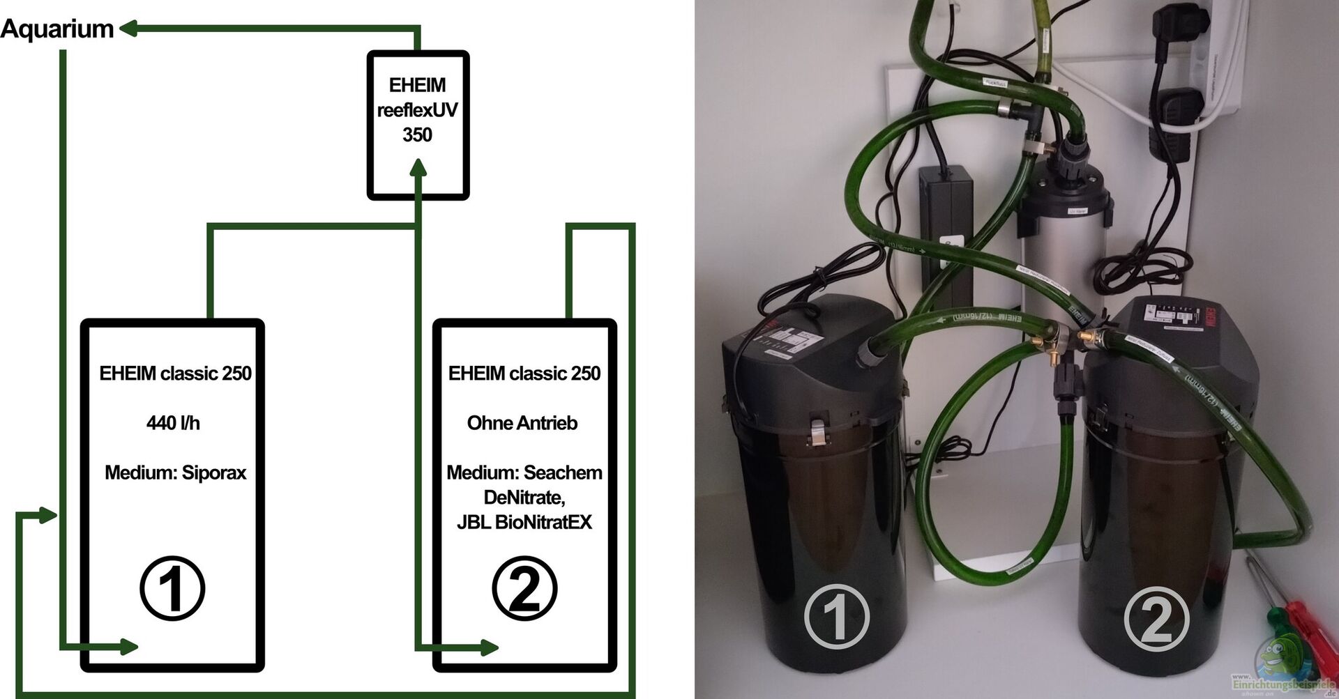 Aktuell sind für die Strömung 1x Panta Rhei Hydro Wizard ecm 42 pro, 1x Tunze 6105 Turbelle, sowie 1x Tunze 6075 Nanostream verbaut. Die Hydro Wizard sind teuer, ich finde die Pumpen aber sehr gut. Die Hydro Wizard läuft auf 60% Leistung, somit bewegt die Pumpe etwa 7'000 l Wasser/Stunde. Die Tunze 6105 läuft ebenfalls auf ca. 40%, was nochmals ca. 5'000 l Wasser/Stunde bewegt. Die Tunze 6075 Nanostream läuft ebenfalls auf 50%, was ca. 4'000 l Wasser/Stunde entspricht. Die Tunze [...]