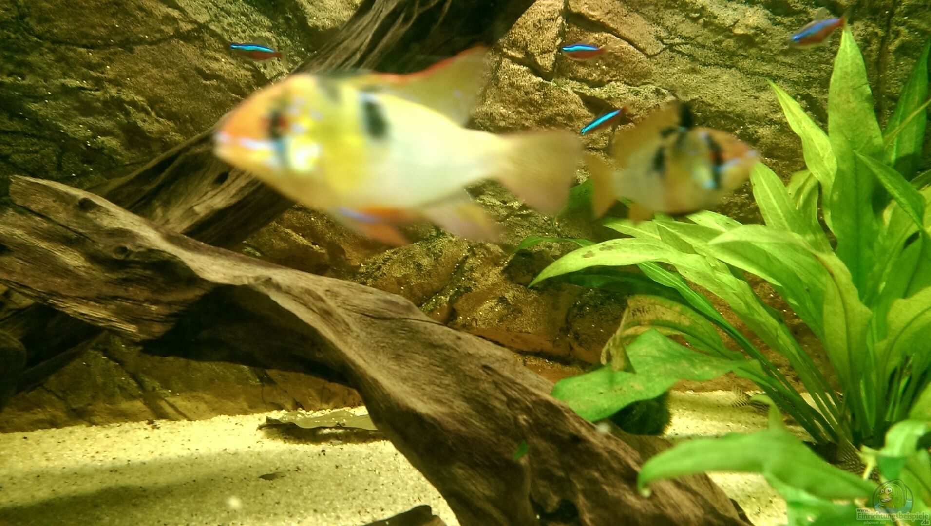 35 x roter Neon 16 x Orangenflossenpanzerwels RedFire Garnelen, keine Ahnung wie viele, schätze so um die 40. Die sind vor 14 Tagen aus einem anderen Becken ins grosse umgezogen. 6 x Diskus, 4 x rot-türkis und 2 x Alenquer 1 Paar Schmetterlingsbuntbarsche Die Anzahl der Garnelen hat sich deutlich erhöht.