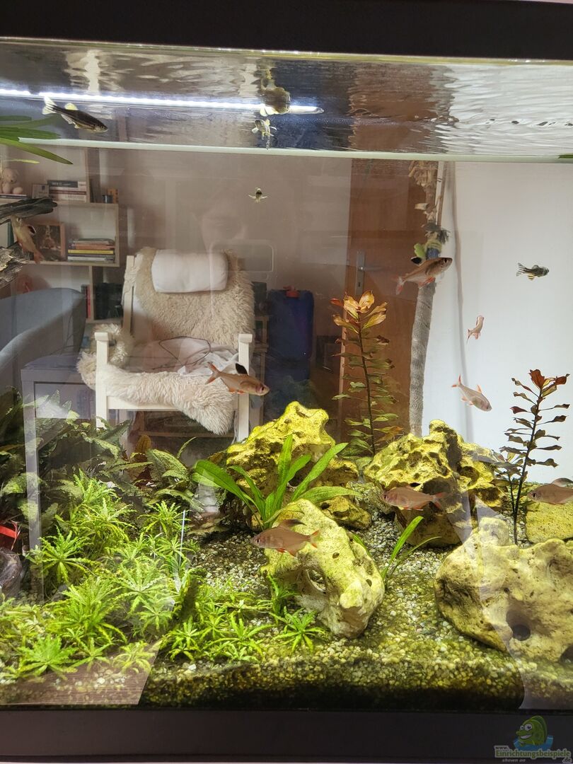 - 10 Zebrabärblinge (unsere "Versuchskaninchen und Starter-Fische") - Stand 2022: 7 Zebra-und Leopardbärblinge (tw. Schleiherform) - 6 Schmucksalmler (Hyphessobrycon rosaceus) - Stand 2022: 7 Schmucksalmler (Schwarz-und Wei??spitzen) - 2 Hexenwelse (Rineloricaria fallax) - Stand Sep 2022: 1 Hexenwels "Thelma" - 7-10 Garnelen-rot (Neocaridina davidi) + X-Babys - Stand 2022: 3 sichtbare rote Garnelen (+ X) - 2 Goldene Honig-Guramis (Colisa chuna) - Stand 2022: [...]