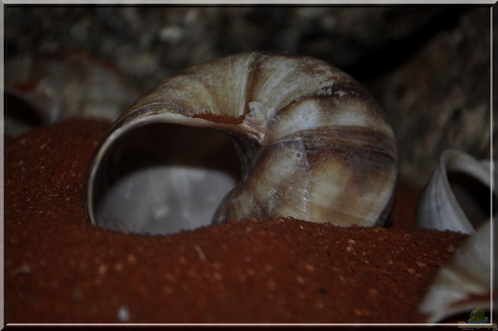 ca. 15kg gesammeltes, gebürstete und abgekochte Flusskieselsteine im Hintergrund aufgebaut mit Spalten/Höhlen, sowie kleine Kieselsteine als Geröll-Ausläufer (hauptsächlich für die Altolamprologus conpressiceps). Alles auf 1cm Styropor zum Schutz des Bodenglases. Verschiedene JUWEL-Slim-Line Module ???Roter Gnei????? an der Rückwand, den Seiten und als Innenfilter-Verkleidung mit zusätzlicher Filtermatte dazwischen. ***** - viele Weinbergschneckenhäuser (derzeit 19 Stück) - [...]