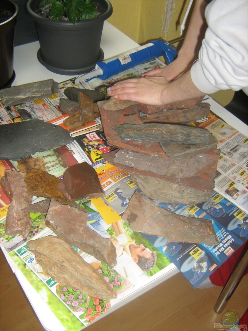 - ein kleiner Steinhaufen - eine grö??ere Steinhöhle mit Aufsatz für die Dornaugen und Tatia Perugia Die Steine wurden im Thüringer Schiefergebirge selbst gesammelt (falls jemand in die Nähe kommt und auch sammeln will die B281 Eisfeld - Neuhaus am Rennweg bietet sich da sehr gut an). Anschlie??end wurden sie Zuhause aussortiert und dabei genauer untersucht. Von den roten Steine sind viele rausgeflogen aber ein paar wenige hab ich riskiert mit einzusetzen. Nach über 1 Jahr kann ich nichts [...]