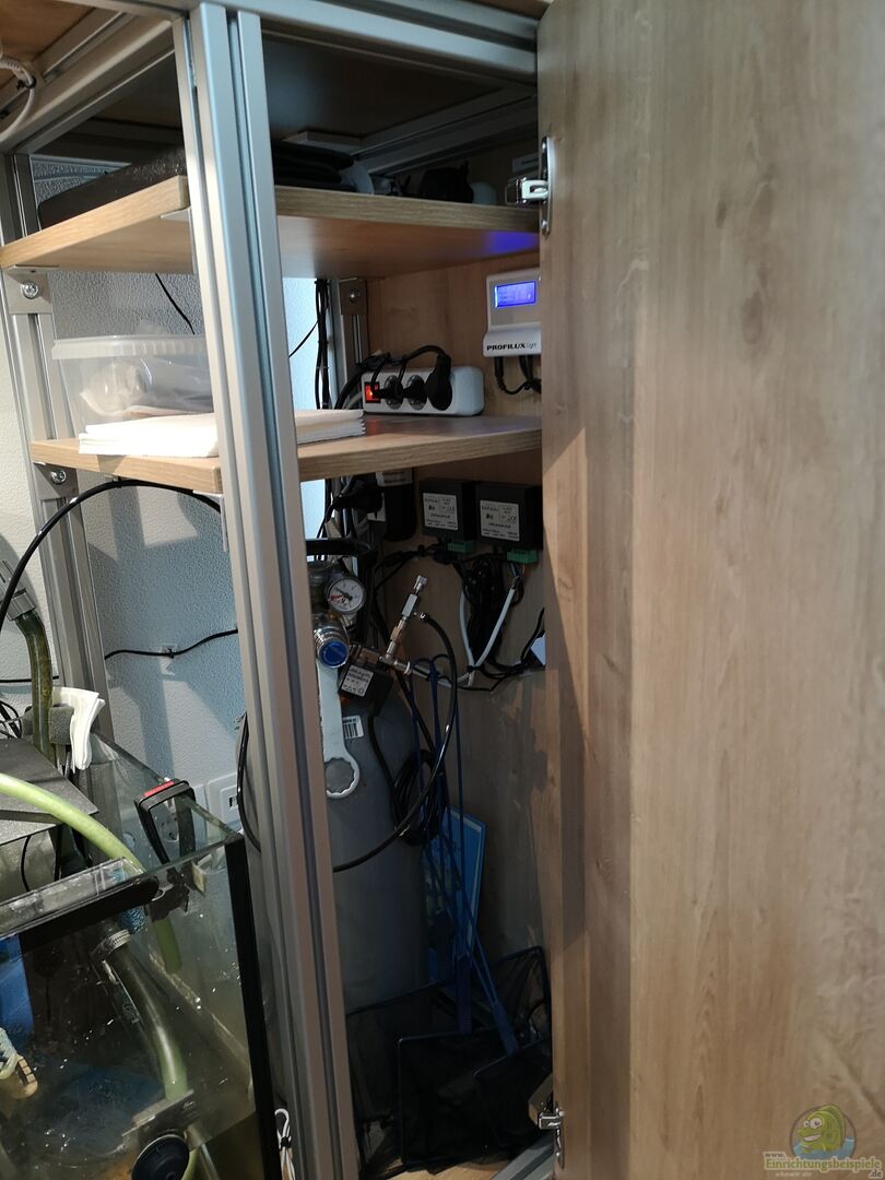 * Heizstab "Tetra HT 300 Watt" * Rückförderpumpe "Tunze silence" mit 3000 Liter/h (real ca. 1500 Liter/h) * Strömungspumpe "Eheim Powerhead aquaball" * UV-Klärer "Eheim Reeflex UV 800" * Luftausströmer "Eheim air pump 400" z. Zt. ausser Betrieb genommen * CO2 Anlage "US Aquaristik" 10 Kg mit Magnetventil * Direktdiffusor "JBL Atomizer" * PH Controller "Ph 201" zur Ansteuerung des Magnetventils * [...]