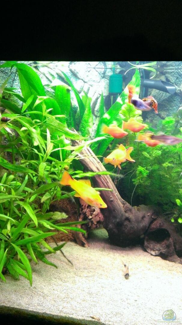 Bei dem Becken handelt es sich um ein bei eBay-Kleinanzeigen erworbenes und restauriertes Juwel Delta 80 in schwarzer Optik mit passendem Unterschrank. Die fehlende Einlegeplatte wurde von mir durch eine zugeschnittene 15mm Spanplatte ersetzt, sowie die ursprüngliche T8-Einsatzleuchte durch eine Juwel High-Lite T5 Einsatzleuchte ausgetauscht.