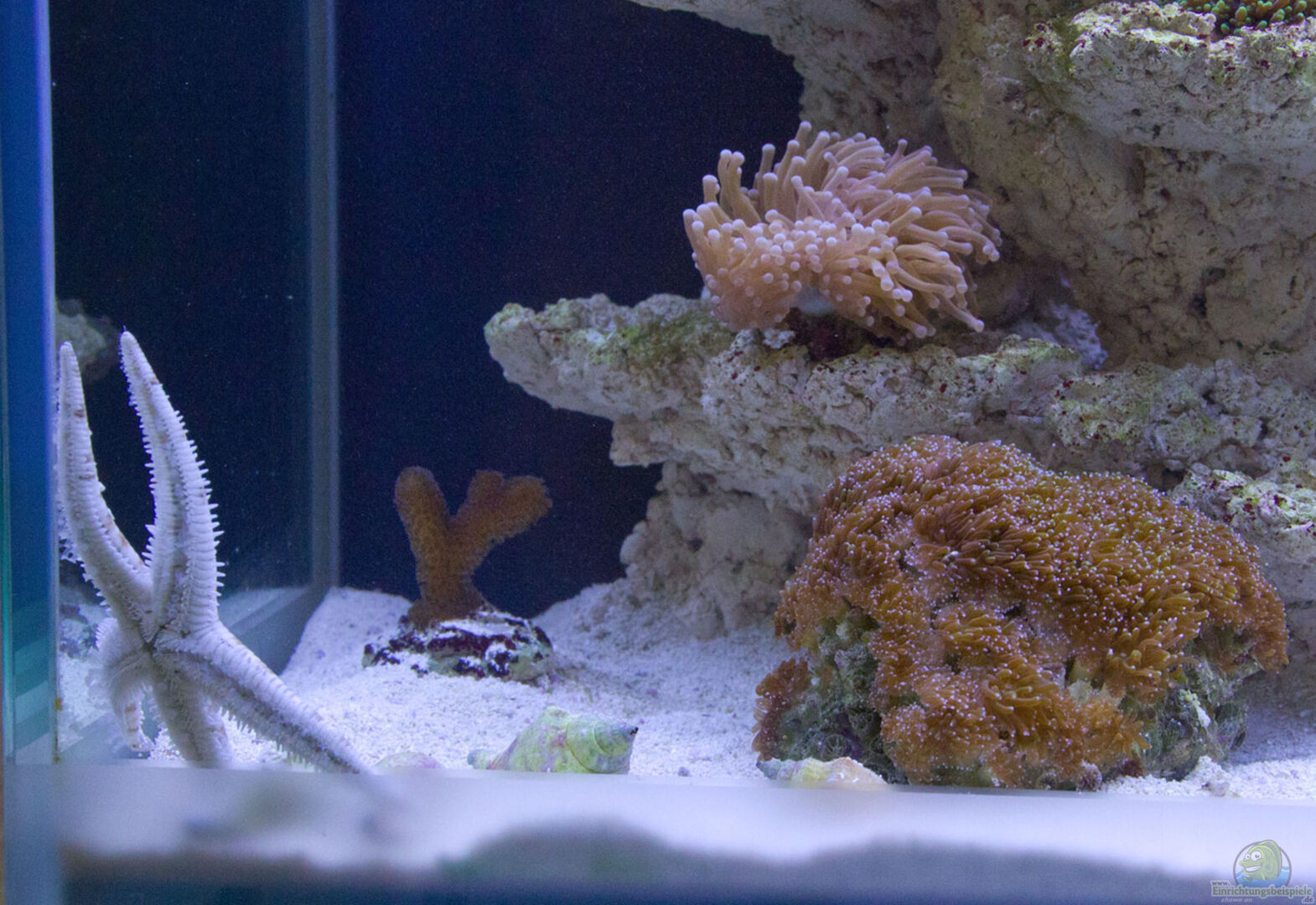 05.04.2015 - die ersten Bewohner 5 x Turboschnecke 5 x Einsiedlerkrebs 3 x Wei??bandputzergarnelen 11.04.2015 2 x "Nemo" 24.05.2015 2 x Blaugelber Riffbarsch 1 x grabender Seestern