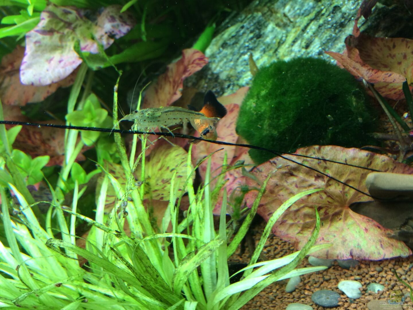 19 bunte Geweihschnecken (Clithon sowerbyana) 10 gestachelte Turmdeckelschnecken (Thiara winteri) 20 Amano-Garnelen (Caridina multidentata) 5 Panda Prachtalgenfresser (Garra Flavatra) 22 Schrägschwimmer (Thayeria boehlkei) 4 Platys (Xiphophorus maculatus "Sunburst Wagtail"), 2 Männchen, 2 Weibchen + ein paar Jungtiere 1 Pärchen (m/w) Kakadu-Zwergbuntbarsche (Apistogramma cacatuoides) 5 Netzpinselalgenfresser (Crossocheilus reticulatus)
