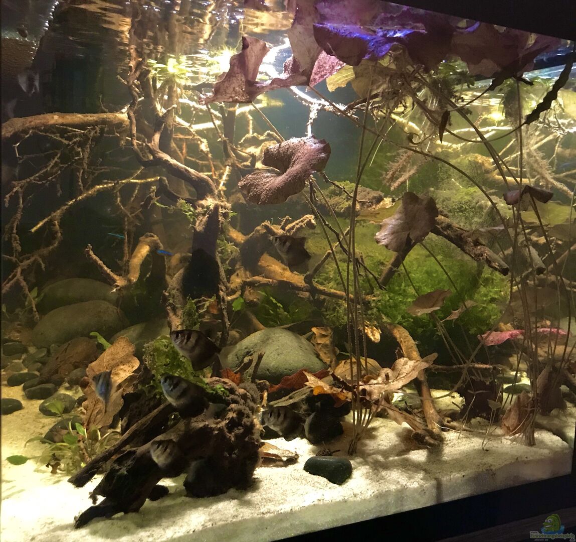 Hier finden Sie traumhaft schöne Aquarien, die mit Afrikanischen Schmetterlingsbuntbarschen (Anomalochromis thomasi) besetzt sind.