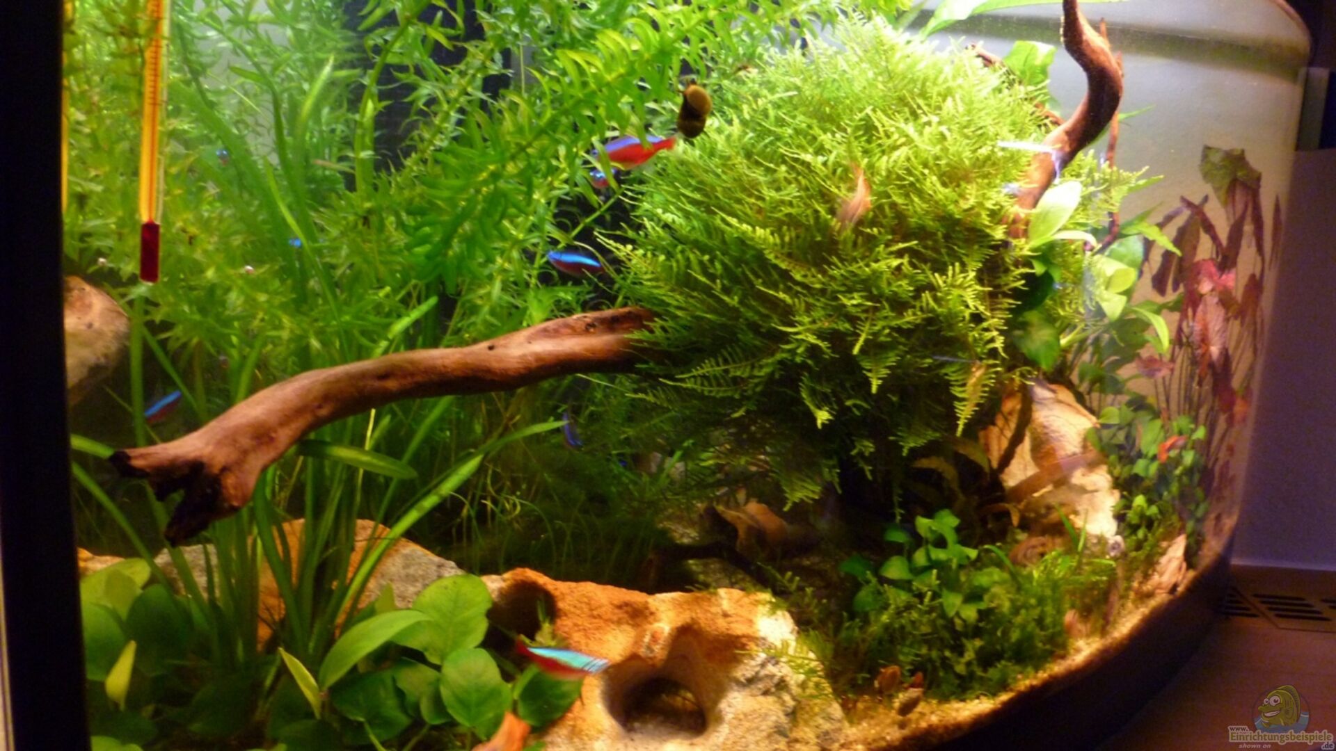 Hier findest du Infos zu Anubias heterophylla (Verschiedenblättriges Speerblatt) und Beispiele für die Gestaltung deines Aquariums mit dieser Pflanze.