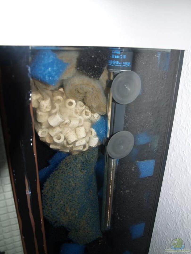 Der Luftheber wird von einer Schego M2K3 Membranpumpe versorgt. Diese bringt max.350ltr/h. Einen Jäger Heizstab mit 125W.
