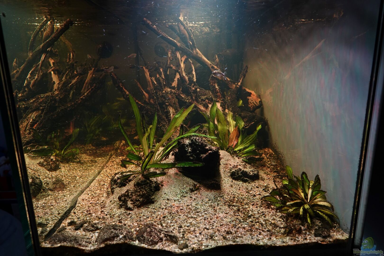Das Aquarium soll ein Fluss/Bach-Abschnitt nachbilden. Dazu habe ich Strömungspumpen eingebaut welche ca. 15'000 Liter Wasser die Stunde bewegen. Der Besatz besteht nur aus Arten, welche der Strömung gerecht werden und diese brauchen.
