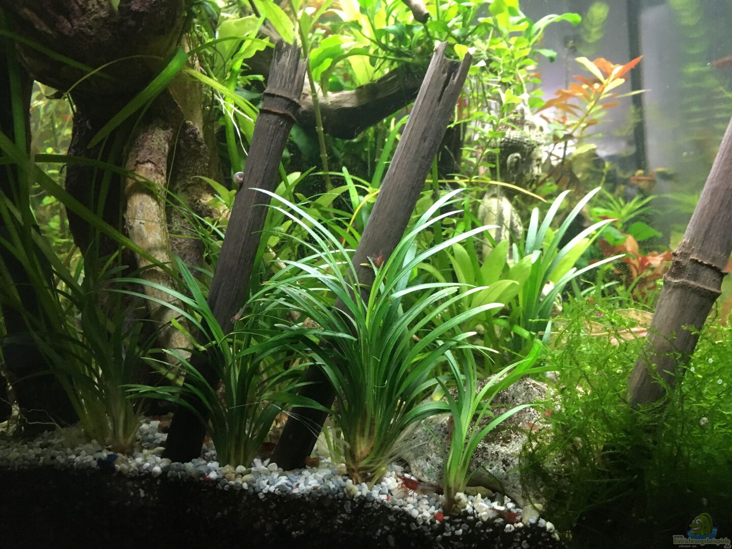Spiegelfolie unter der Abdeckung zwecks etwas besserer Ausleuchtung. Den Unterschrank habe ich wei?? foliert, finde da kommt der Inhalt besser zur Geltung. Ursprünglich ist der Schrank buchefarben. Ich habe das Becken von einer älteren Dame übernommen, die es zwecks Umzug nicht in die neue Wohnung mitnehmen konnte. So bin ich mehr oder weniger in die Aquaristik hinein gestolpert. Anfang diesen Jahres folgte ein zweites Becken mit 38 Litern. Dieses werd ich in naher Zukunft ebenfalls vorstellen. [...]