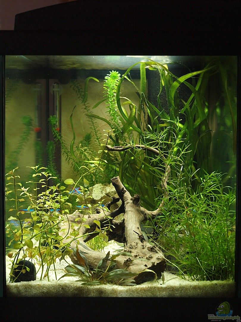 Unser erstes Becken. Komplettset MP Aquapro 60 stehend auf 2mm Thermomatte. Lange beim Hornbach drum herum geschlichen und dann irgendwann einfach mal mitgenommen. Eigentlich sollte es zuerst der Aufzucht von Urzeitkrebsen dienen, aber hierfür läuft nun seit ca. 3 Wochen ein kleines 30er Becken ein.