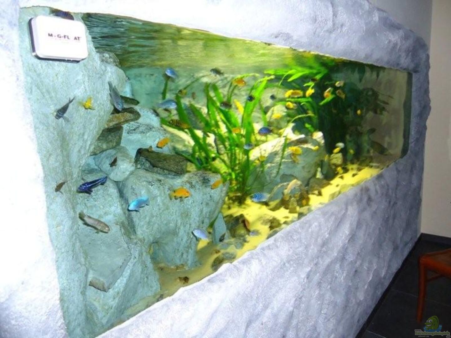 3500 Liter Mbuna Becken aus Floatglas / sto??verklebt mit den Abmessungen 300x150x80 und eingeklebtem ??berlaufschacht in der linken Ecke des Beckens (jedoch nicht sichtbar wegen Felswand). Dieses Becken befindet sich in einem an das Wohnzimmer angrenzenden Technikraum mit Wasseranschlüssen /Ablauf und steht auf einem gemauerten Sockel (bei Neubau berücksichtigt).Dort befindet sich ebenfalls das 600 Liter Filterbecken mit 5-Kammern. Der Technikraum verfügt über eine Aussparung in der Grö??e [...]