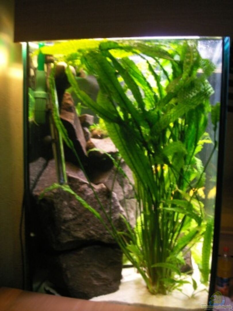 Ich habe mir mit diesem Aquarium einen gro??en Traum erfüllt. Schon mit 6 Jahen hatte ich ein kleines Anfängerbecken mit 54 l (60er Becken) und ab 14 Jahren ein etwas grö??eres mit 94 l (80er Becken). Aber dieses habe ich mir extra nach meinen vorstellungen anfertigen lassen. Meine Abdeckung habe ich mir zum ersten mal selbst gebaut. Habe hierzu einfache Spanplatten genommen, die Ich mit Acryllack von innen gut bestrichen und von au??en mit Holzfolie verkleidet habe.
