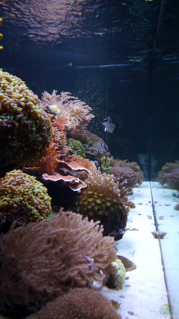 Das Becken ist in der Wand eingelassen. Die Hauptansicht ist vom Wohnzimmer. Dort ist eine Serviceklappe über dem Becken. Die Technik ist vom Hauswirtschaftsraum zu bedienen und zu kontrollieren. Arbeiten wie Wasserwechsel und Reinigungsarbeiten finden von dort aus statt. Die Belechtung ist an zwei Wagen, welche in einer Laufschiene fahren aufgehangen. Dadurch kann die Leuchte zur Seite gefahren werden und das Becken ist von oben frei erreichbar.