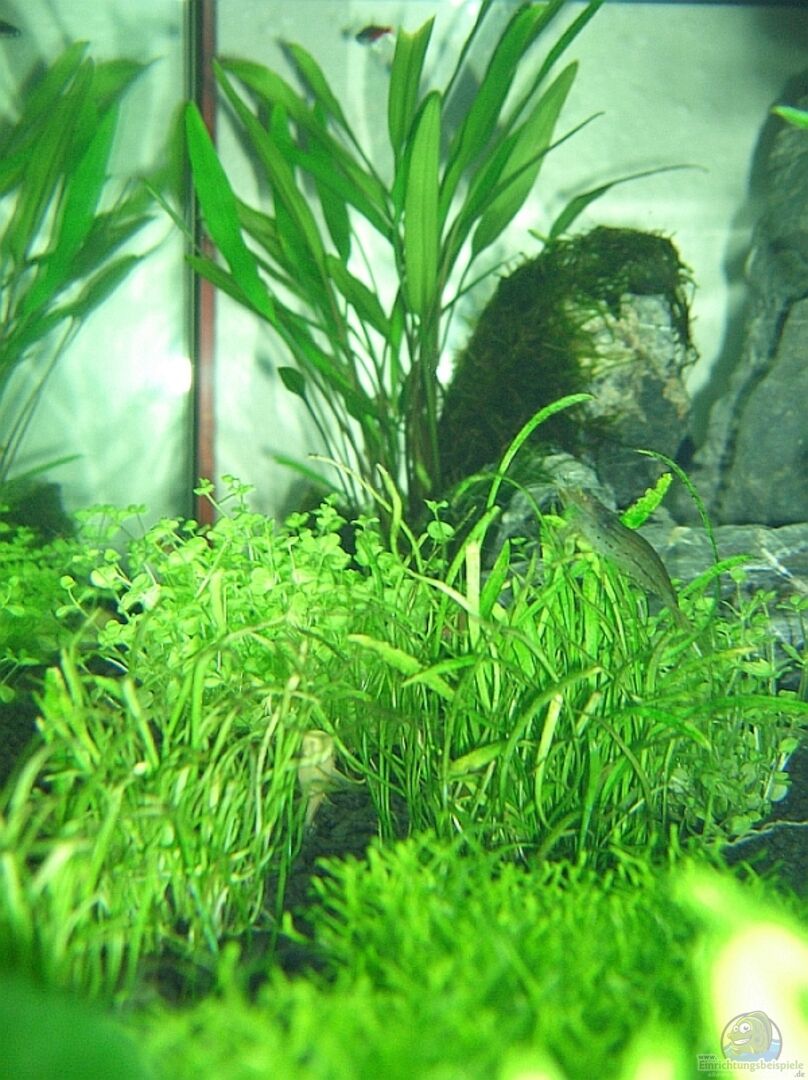 3 x Zwergperlkraut, 1 x Teichlebermoos, 2 x Javamoos, 1 x Mooskugel, 4 x Lilaeopsis brasiliensis, 3 x Vallisneria in einem Bund gepflanzt, 3 verschiedene Wasserkelche