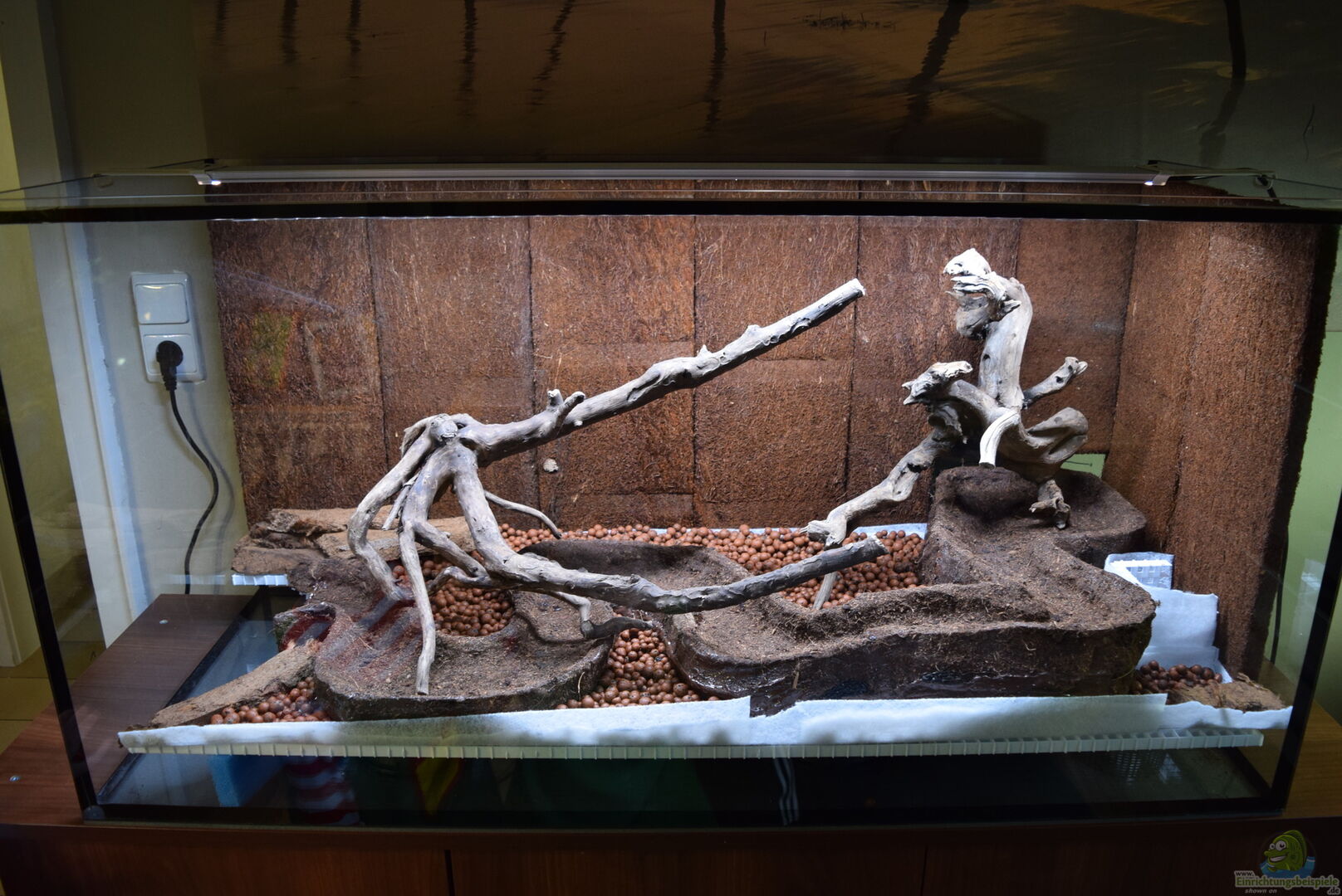 Da ich ja schon einmal versucht habe einen Bachlauf zu gestalten (siehe das Beispiel Bachlauf-Paludarium) und nicht ganz zufrieden war mit dem Ergebnis, wollte ich diesmal ein echten Bachlauf konstruieren. Das Ganze beruht auf dem Prinzip eines doppelten Bodens. Das Wasser wird mit Hilfe einer kleinen Zimmerbrunnenpumpe hochgepumpt und läuft mit Gefälle ca. 5 % von rechts nach links. Eine zurecht geschnittene Schaumstoffmatte filtert das Wasser auf der linken Seite, bevor es wieder hochgepumpt [...]
