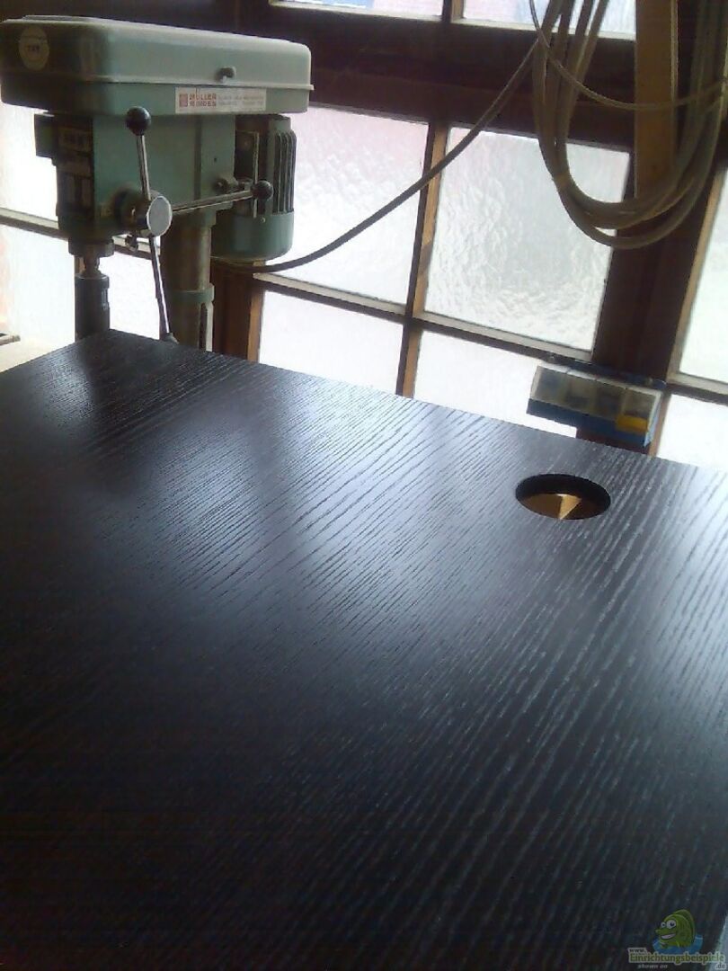 Zwei Bodenbohrungen: 1 Stück Ablauf für Filter, 1 Stück Zulauf Filter, Glasstärke 15 mm Abdeckung aus 2 mm Aluminium 60 my RAL 9006 lackiert