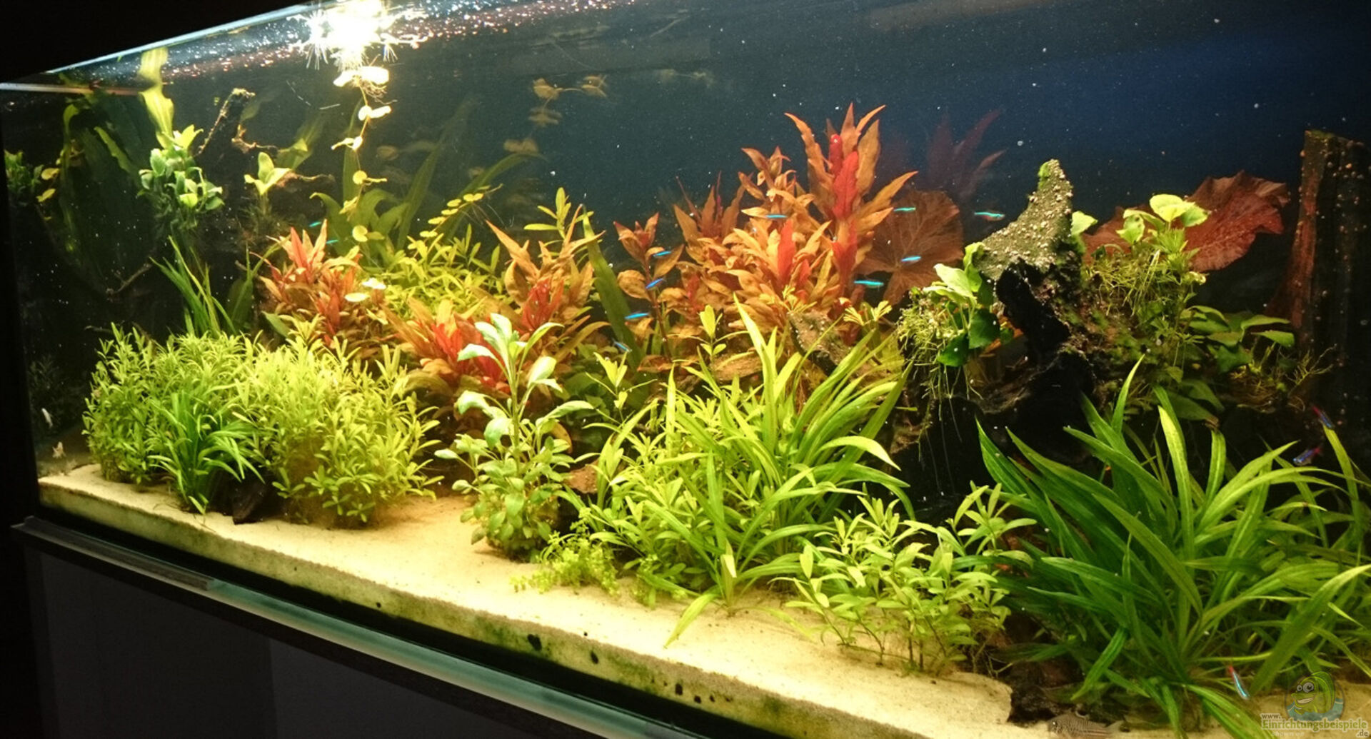 Nach ca. einem Jahr als Anfänger mit einem 250er Südamerika Becken bin ich 2015 auf eine Nummer grö??er umgestiegen. Bei Südamerika bleibt es, weil es mir einfach gefällt. Der Schrank ist Marke Eigenbau und noch nicht komplett fertig. Es fehlen noch Einlegeböden und die Türen mit Mattglas(Rohr-, Kabeldurchführungen und Steckdosen sind im Schrank verlegt).