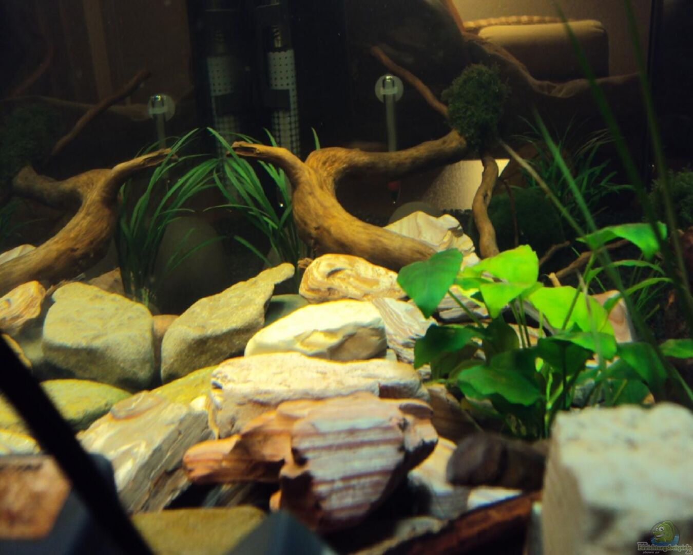 Aquarium läuft seit dem 19.07.2010 MP 96 Liter Aquarium mit Sto??verklebung Das gesamte Becken wurde auf die Bedürfnisse und Ansprüche der Molukkenfächergarnele (Atyopsis moluccensis) eingerichtet und in Betrieb genommen. Da die Garnelen sich in die Strömung stellen und mit ihren Fächern das Wasser filtern, wurden 3 Strömungspumpen installiert.