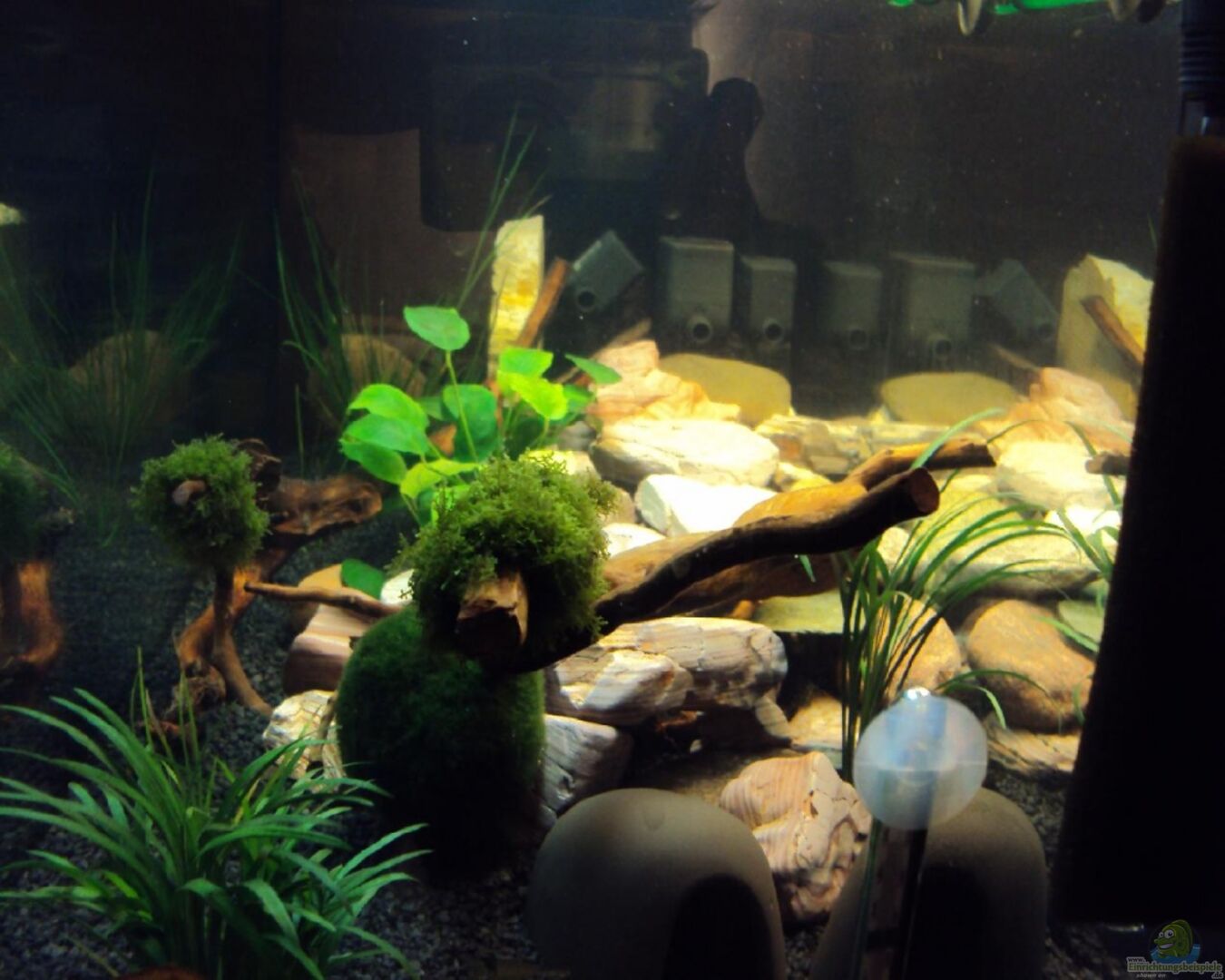 Aquarium läuft seit dem 19.07.2010 MP 96 Liter Aquarium mit Sto??verklebung Das gesamte Becken wurde auf die Bedürfnisse und Ansprüche der Molukkenfächergarnele (Atyopsis moluccensis) eingerichtet und in Betrieb genommen. Da die Garnelen sich in die Strömung stellen und mit ihren Fächern das Wasser filtern, wurden 3 Strömungspumpen installiert.