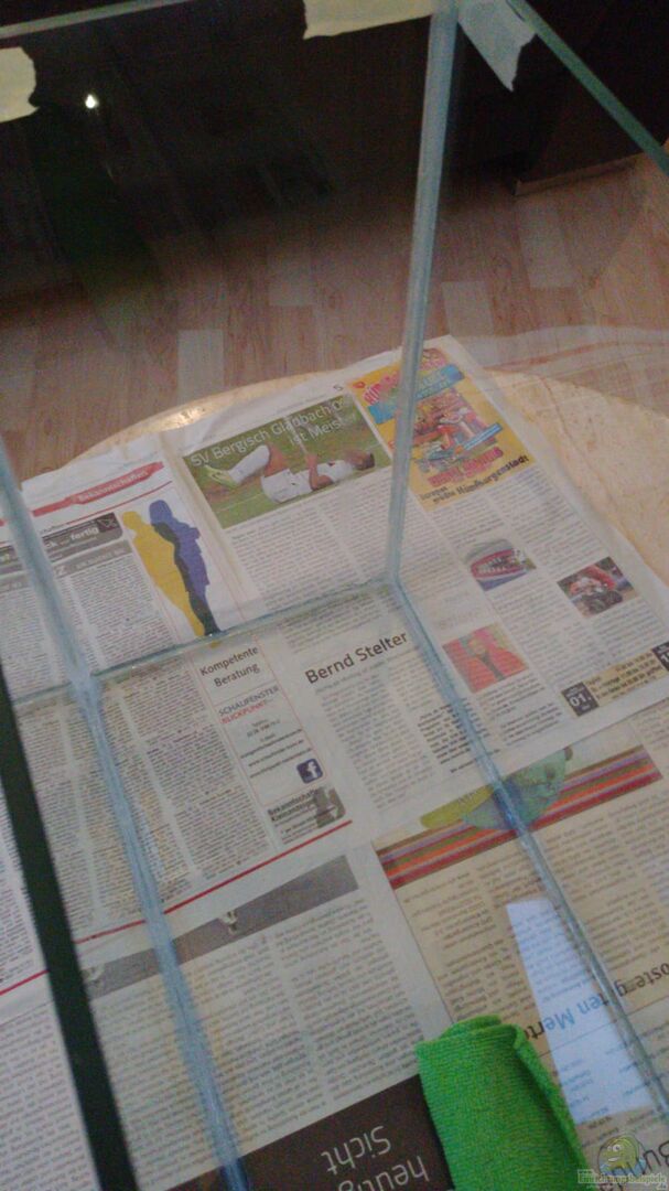 Ich hab ein geschenktes Standardbecken 80x40x30 zerlegt, beim Glaser auf die Ma??e 80x40x22 zuschneiden lassen plus 2x 2cm Querstreben und selber verklebt mit glasklarem Aquarium Silikon. Trockenzeit 12 Tage, eingeklebter HMF