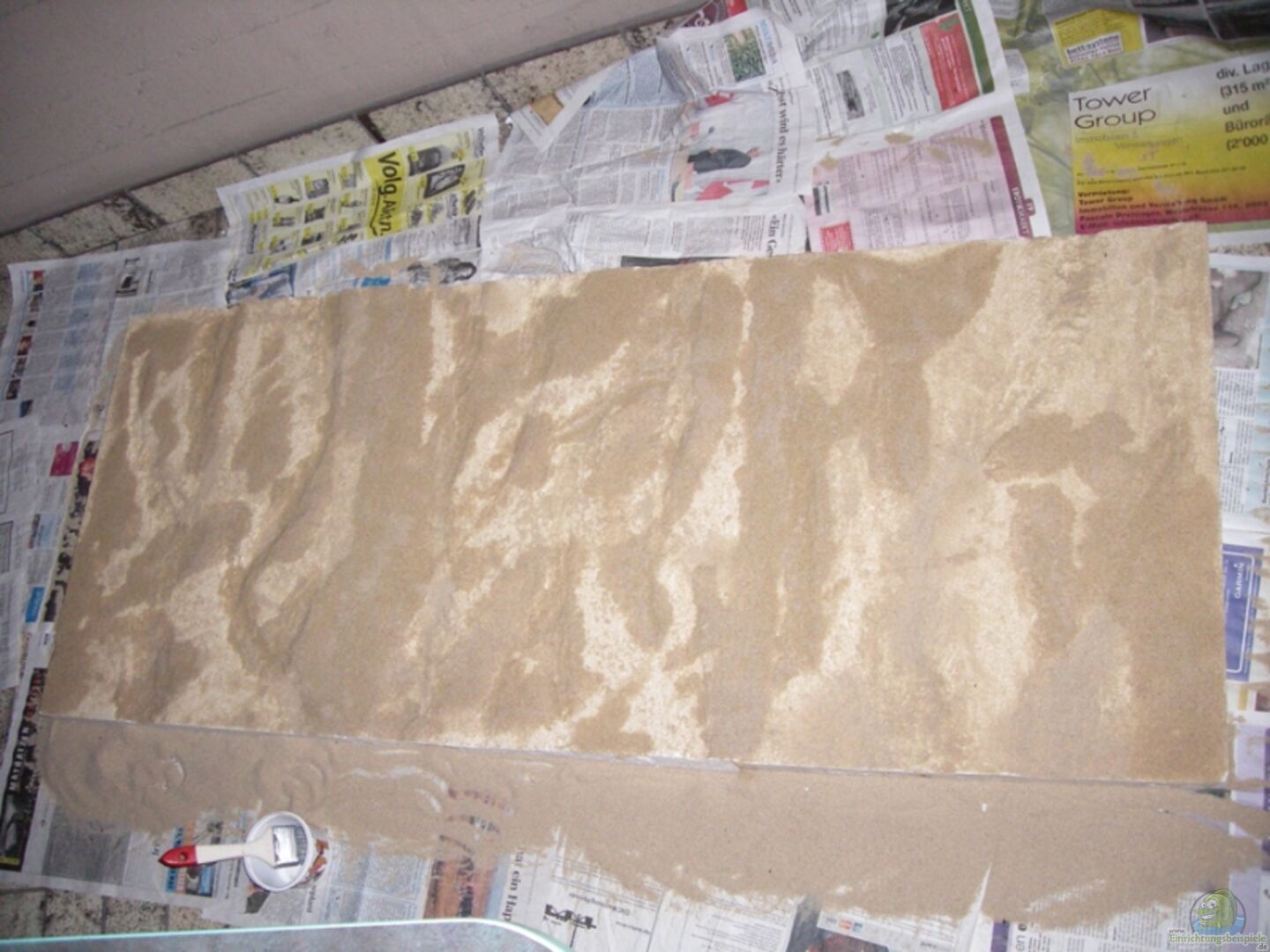 Aquarien Rückwand aus Styropor, mit Wärme bearbeitet und Sand beklebt (hinter dem Aquarium)