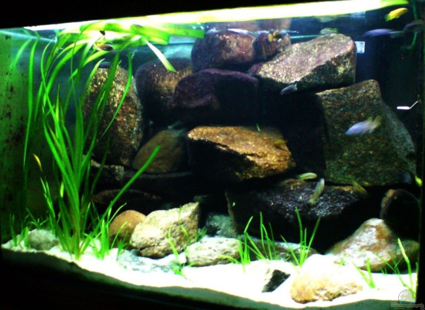 Das Becken steht in einer Nische im Esszimmer. Der Unterschrank und die Abdeckung sind Eigenbauten.