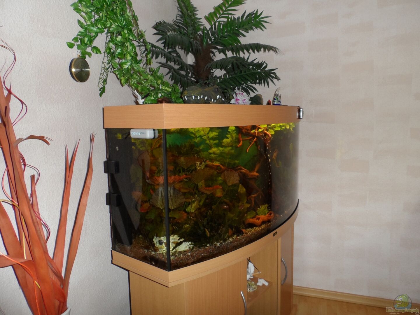 -dieses Aquarium hat eine gewölbte Panoramascheibe mit passendem Unterschrank und Blende -seit 2002 lauft das Aquarium mit verschiedenen Beckentypen wie z.b.afrikan. Barsche -seit September 2012 ein Südamerikabecken
