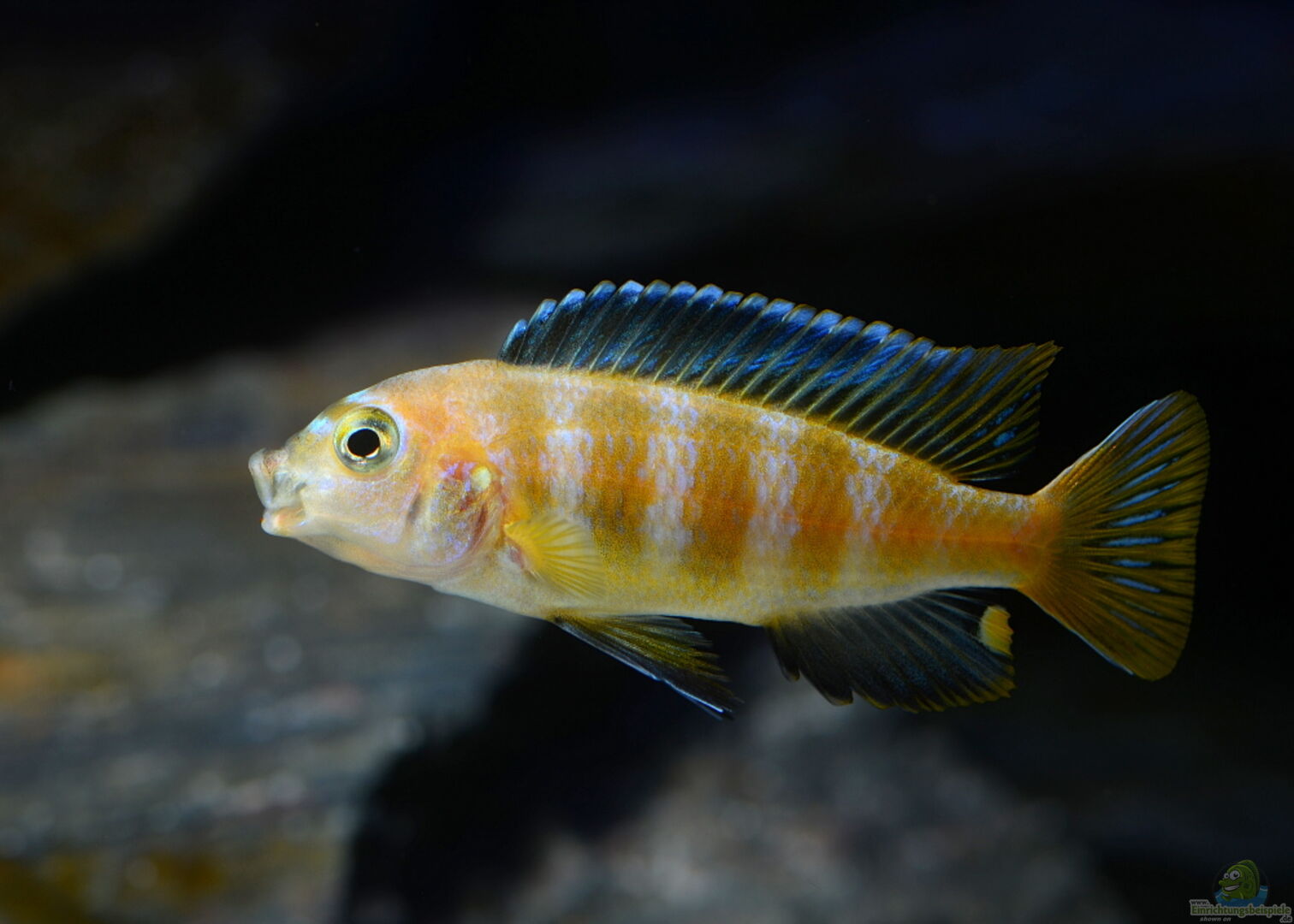3/7 Pseudotropheus saulosi, wobei aufgrund des Alters von ca. 4 Monaten die genaue Geschlechtsunterscheidung noch schwer fällt.