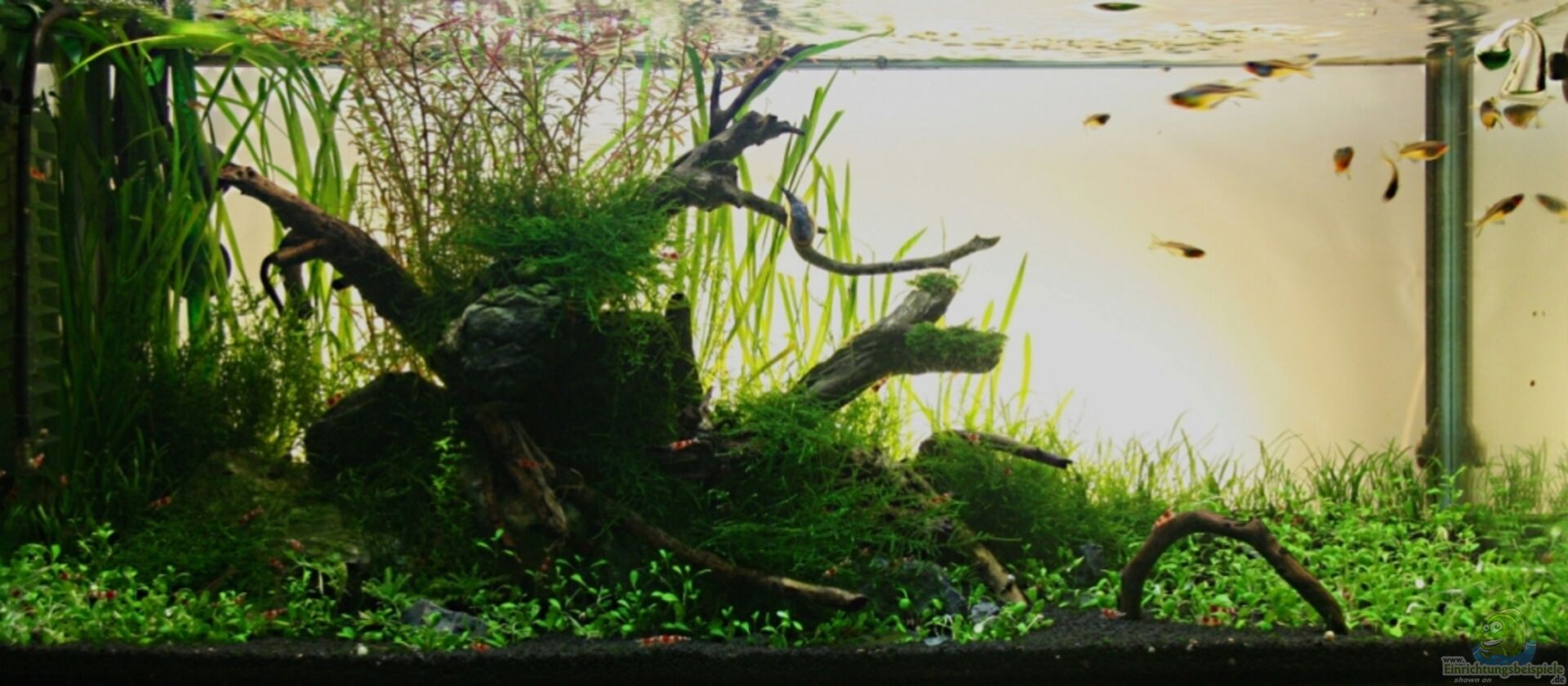Rückwand aus Milchglasfolie das Becken ist ein altes Juwel Aquarium mit eloxiertem Rahmen