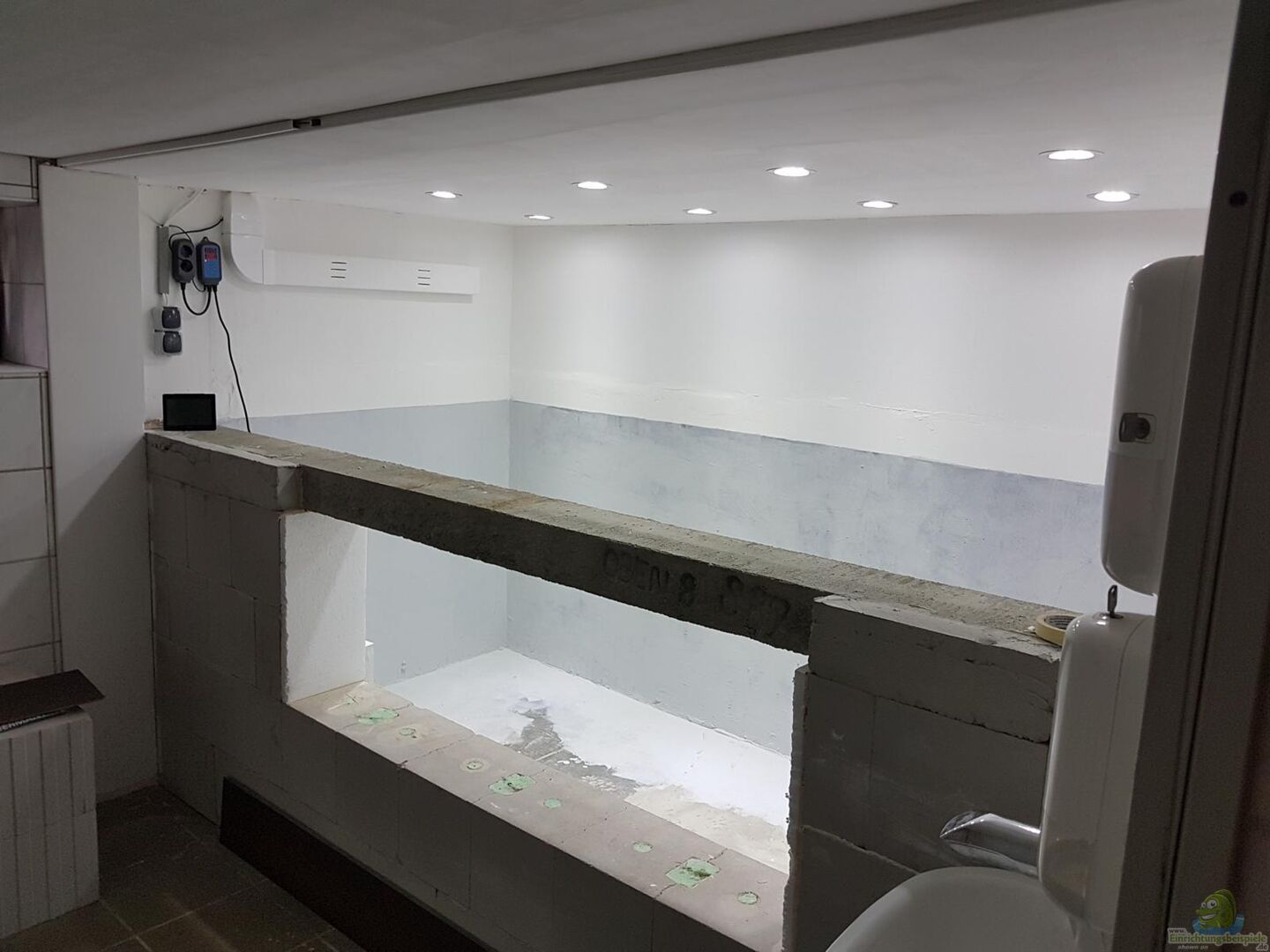 Betonaquarium mit Plexiglasscheibe 20 mm Scheibengröße 170x60 cm Sichtfläche ist 150x50 cm der Rest ist für die Verklebung verwendet worden Der gesamte Bau ist in Eigenleistung entstanden Das Becken ist nicht vollständig befüllt nur bis auf 100 cm da ich gerne wenn ich davor sitze die Oberflächenbepflanzung sehen möchte. Das Becken hat aktuell 3950 liter Wasser drin. Umbau 2020 von Teichfolie auf GFK Wanne Das Becken ist mit 47m2 Glasfasermatte und 24kg Harz ausgekleidet [...]