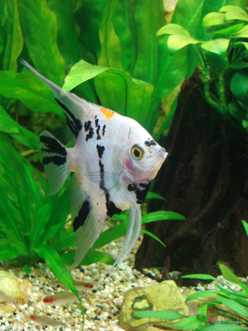 2 Pterophyllum scalare (Skalar) (1m/1w) 2 Mikrogeophagus altispinosus (Boliv. Schmetterlingsbuntbarsch) (1m/1w) 15 Hemigrammus bleheri (Rotkopfsalmler) 5 Hyphessobrycon bentosi (Schmucksalmler) 6 Corydoras paleatus (Marmorierter Panzerwels) 5 Otocinclus (Ohrgitterharnischwels) 2 Farlowella acus (Nadelwels) 1 goldene Apfelschnecke 2 Rennschnecken Restbestand aus altem Becken: 4 Paracheirodon innesi (Neonsalmler)