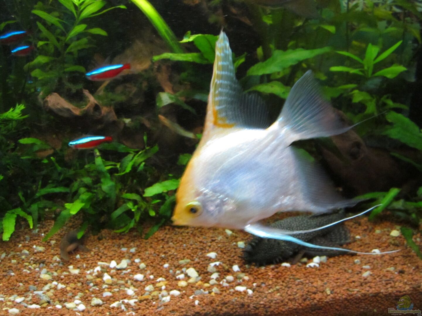 2 Pärchen Skalare die auch in regelmässigen Abständen laichen, Maronibuntbarsch 1/1 Roter Neon 20 Stk. Geschlecht unbekannt Kupfersalmler 10 Stk. Geschlecht unbekannt geflektes Dornauge 7 Stk. Geschlecht unbekannt rot blauer Kolumbianer noch 2 Stk., wird nicht aufgestockt -natürliche Auslese 1 Pärchen Ancistrus spec. Der Besatz ist seit den Anfängen 2007 unverändert, lediglich die natürliche Auslese schlägt ab und an mal zu, ich stocke nicht auf da die Besatzdichte auch [...]