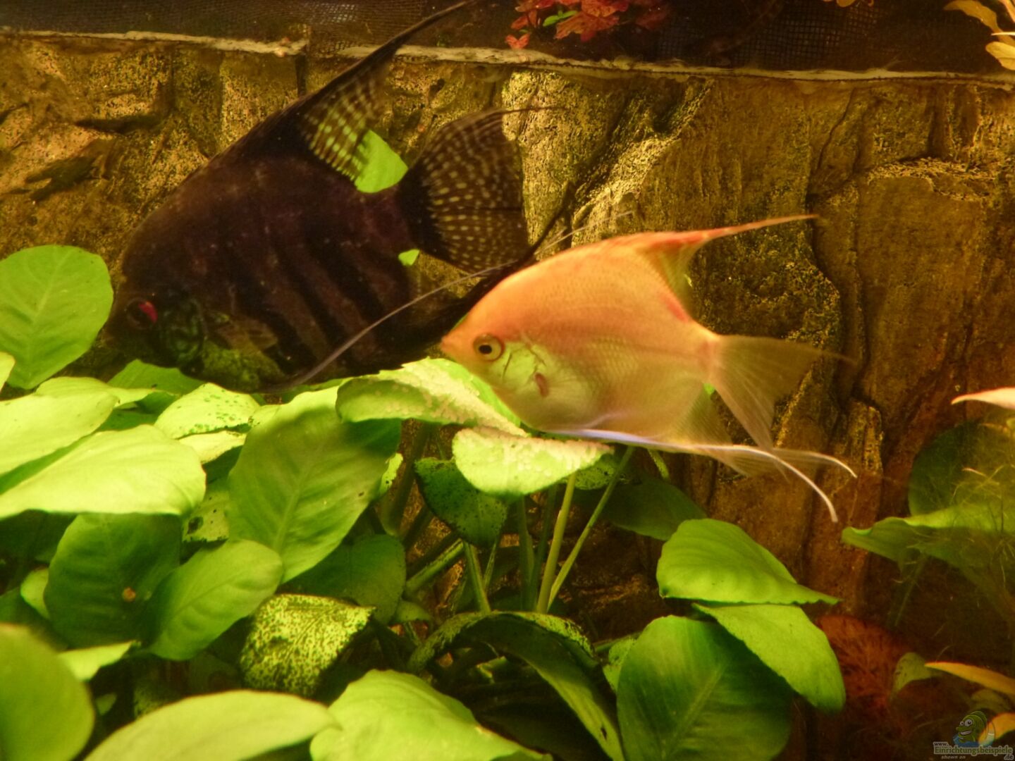 5 Pterophyllum Scalare Varianten: 1 Gold Pearlscale & 1 Schwarz (Paar, bereits gelaicht), 1 Naturfarbe & 1 Leopard (evtl. Paar, noch nicht gelaicht), 1 Koi 3 Harlekin/Ajamaru-Regenbogenfische (Melanotaenia boesemani): : 1 Weibchen 2 Männchen 4 Trauermantelsalmer (Gymnocorymbus ternetzi): 1 Weibchen 3 Männchen (bereits mehrmals gelaicht) 5 Black Molly (Poecilia sphenops): 4 Weibchen 1 Männchen 6 Platys (Xiphophorus maculatus) 4 Weibchen 2 Männchen 3 Rotstrichbarbe (Puntius denisonii) 1 [...]