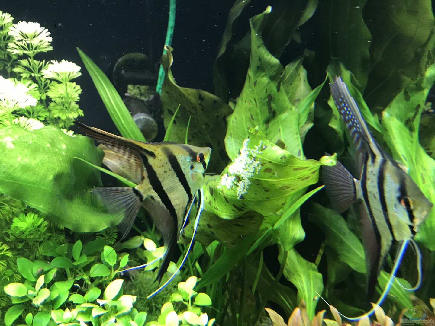 7x Synodontis lucipinnis 20x Corydoras adolfoi 8x Otocinclus affinis 4x Amanogarnele 2x Peru altum Skalar (laichen regelmässig ab im Becken) 7x blauer Kongosalmler (Phenacogrammus interruptus) 7x Rotrücken-Kirschflecksalmler (Hyphessobrycon pyrrhonotus) 6x Platy (Xiphophorus maculatus) 15x Weissflossen Schmucksalmler