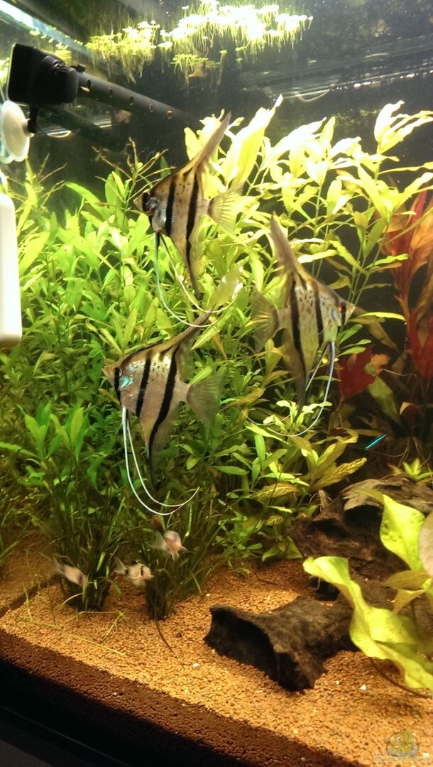 3 Skalare (Pterophyllum scalare "Rio Nanay") 20 Roter Neon (Paracheirodon axelrodi) 12 Pandapanzerwelse (Corydoras panda) 5 L450(Hypancistrus spe. Santarem) 1m/1w Pandazwergbuntbarsch (Apistogramma nijsseni) 5 Zebrarennschnecken (Vittina coromandeliana) ich wei?? sind keine Amerikaner aber sind nur wegen der Algen und Resteverwertung im Becken