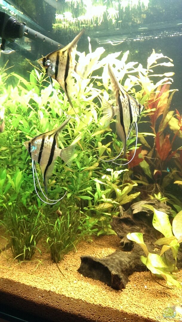 3 Skalare (Pterophyllum scalare "Rio Nanay") 20 Roter Neon (Paracheirodon axelrodi) 12 Pandapanzerwelse (Corydoras panda) 5 L450(Hypancistrus spe. Santarem) 1m/1w Pandazwergbuntbarsch (Apistogramma nijsseni) 5 Zebrarennschnecken (Vittina coromandeliana) ich wei?? sind keine Amerikaner aber sind nur wegen der Algen und Resteverwertung im Becken