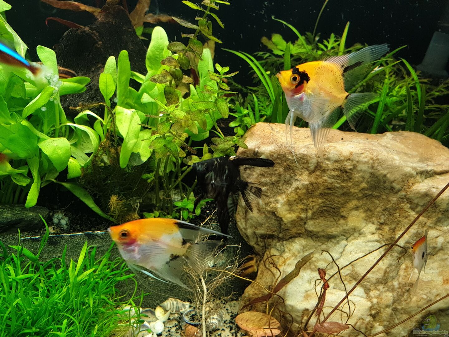 1/1 Apistogramma cacatuoides 1/1 Mikrogeophagus ramirezi 1/1 Mikrogeophagus ramirezi "Electric Blue" 3 Koi-Skalar, Pterophyllum scalare 1 Schwarzer Skalar, Pterophyllum scalare 6 Corydoras aeneus "Black Venezuela" 25 Roter Neon, Paracheirodon axelrodi 5 Paradiesschnecken