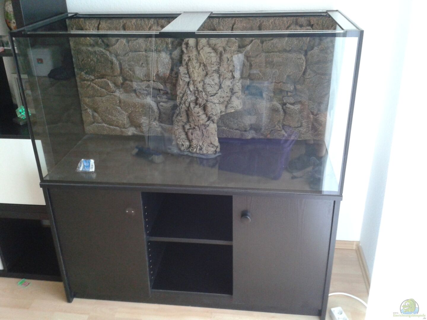 - Rückwand Wasserteil: * bestehend aus schwarzer Rückwand hinter dem Becken und Aqua Della Steinen im Becken in Bodennähe an den Seitenwänden und der Rückwand verklebt. Die Steine sind Innen hohl und dienen Somit als Höhlen für die Ringelhandgarnelen und Welse. - Rückwand Landteil: * im Landteil besteht die Rückwand ebenfalls aus schwarzem Hintergrund und aus 2 Rückwandmodulen von Steinzeit-Design. - Moorkienwurzeln in verschiedenen Grö??en - Korkenzieherhaselnussäste [...]
