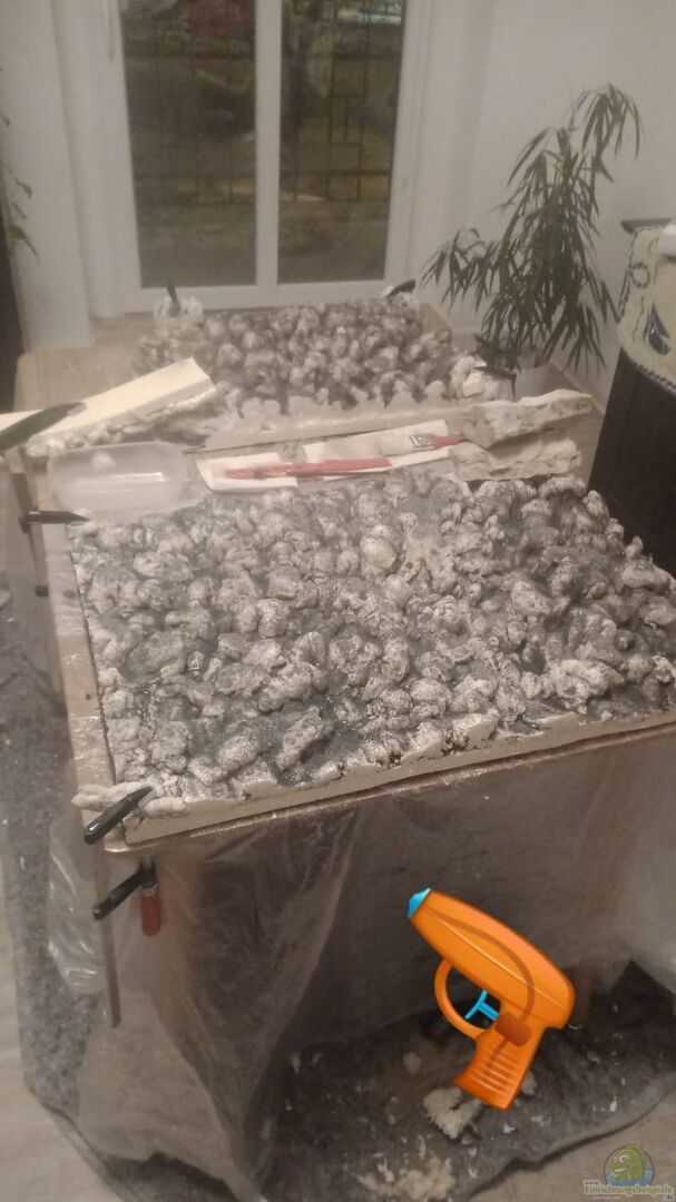 Der Zeitaufwendigste Schritt der Aquariumeinrichtung stellte zweifelsohne der Rückwandbau dar. Aber ich finde es hat sich gelohnt und ich bin mega glücklich mit dem Ergebnis. Basis der Rückwand bildet eine 20mm starke Styrodurplatte, auf diese habe ich Brunnenschaum aufgetragen und Diesen während des Aushärtungsvorgangs permanent mit Sand überdeckt. Anschlie??end, als der Brunnenschaum komplett aufgegangen und durchgetrocknet war, habe ich das ganze mit Epoxidharz beschichtet und erneut übersandet. Inspiriert [...]