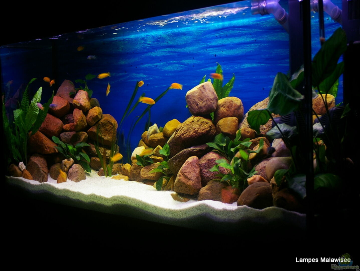 Das Becken besteht aus 10 mm starken Glas und hat 2 3/4" Bohrungen im Boden. Diese Bohrungen habe ich mit Kugelhähnen versehen und so eingerichtet, dass ich diese für den wöchentlichen Wasserwechsel nutzen kann. Der Auslauf ist so eingerichtet, dass max. 150 Liter Wasser über einen 3/4" Schlauch in die Badewanne laufen. ??ber den Zulauf, welcher in den Steinaufbauten versteckt ist, wird das Wasser wieder direkt eingeleitet. <`)))))><__<`)))))><__<`)))))>< Das [...]