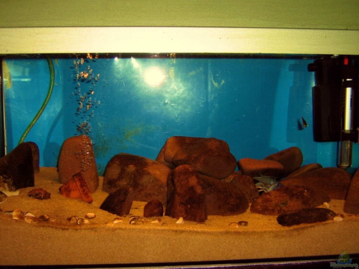 Meine neue Aq. Rückwand im Stein Optik. Viele höhlen und versteck Möglichkeiten. Gesamte Technik versteckt. Hinter dem Gro??en Sand Berg (Rechts) verbergen sich Gro??e höhlen auch unter dem Berg!. _____ Habe meine Juwel Aquarium Abdeckung in Brauner Farbe Lackiert. (Farbeffekt Hochglanz/ Porös)