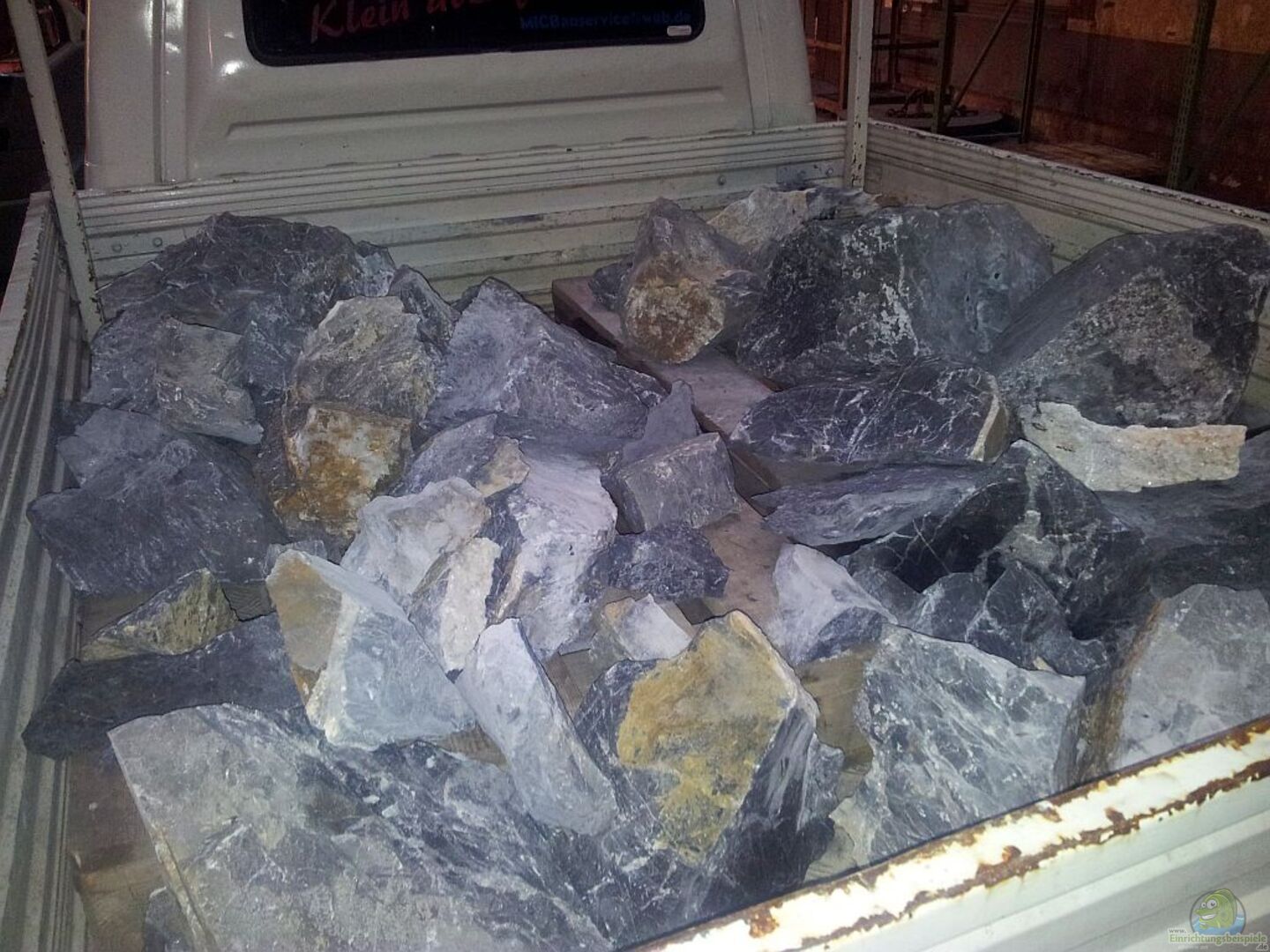 Die Rückwand ist von Aquadecor aus Serbien. Die Steine habe ich aus gro??en bis zu 500 Kilo schweren Brocken mit einem Presslufthammer in handliche Stücke rausgemei??elt. Danach wurden bei den schönsten Exemplaren die scharfen Kanten entgratet und abgerundet, damit die Verletzungsgefahr für die Fische verschwindet. Die Steinart ist Warsteiner Bruch auch unter dem Namen Alpenkalk geläufig. Habe von einem Steinmetz erfahren das es die selbe Gesteinsschicht ist. Der Name richtet sich nur nach [...]