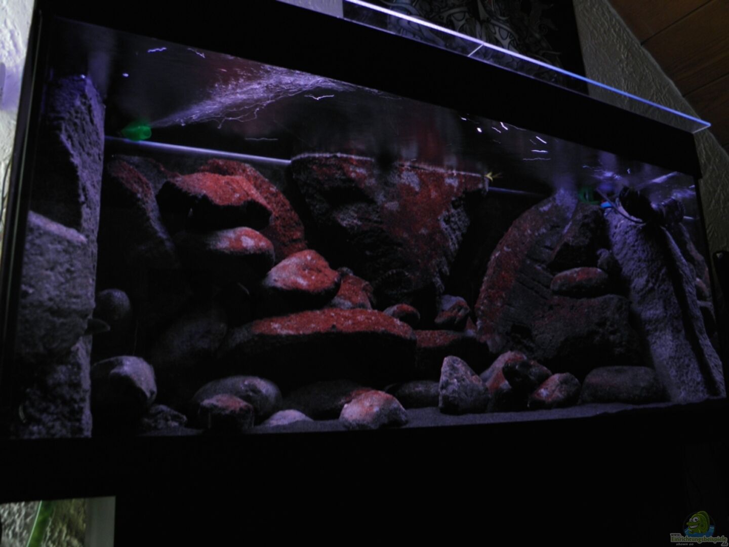 - Artenbecken - hohle Rückwandmodule (Eigenbau) - 3/4 Steinschalen in Kombi mit echten Steinen - eigenbau beleuchtung - 2 Au??enfilter + Strömungspumpe Dieses Becken ist ein juwel rio 180. Es wurde die Abdeckung , die Beleuchtung und der Eckinnenfilter entfernt. Die Füllhöhe wurde erhöht.